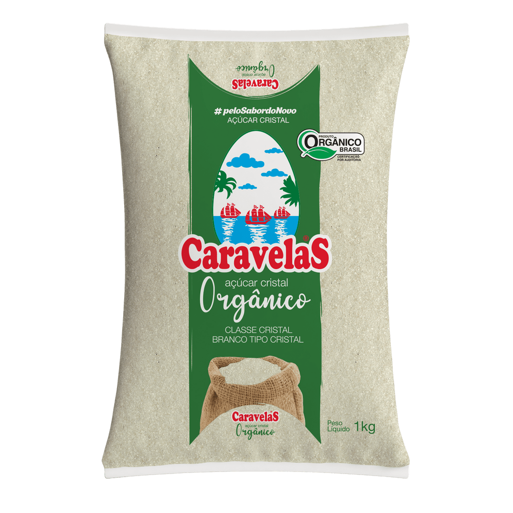 AÇÚCAR CRISTAL ORGÂNICO CARAVELAS 1KG – FARDO COM 10 UNIDADES